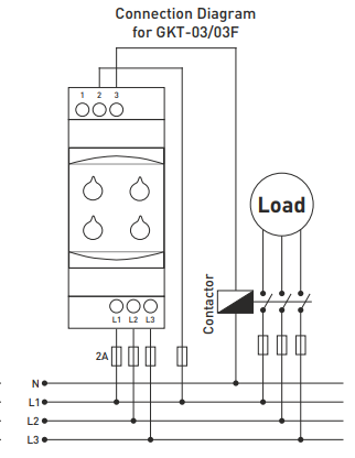 Three-phase monitoring/protection relay for controlling overvoltage, undervoltage, sequence, phase failure with timer. GKT-03/03F (ACTIVATED)
