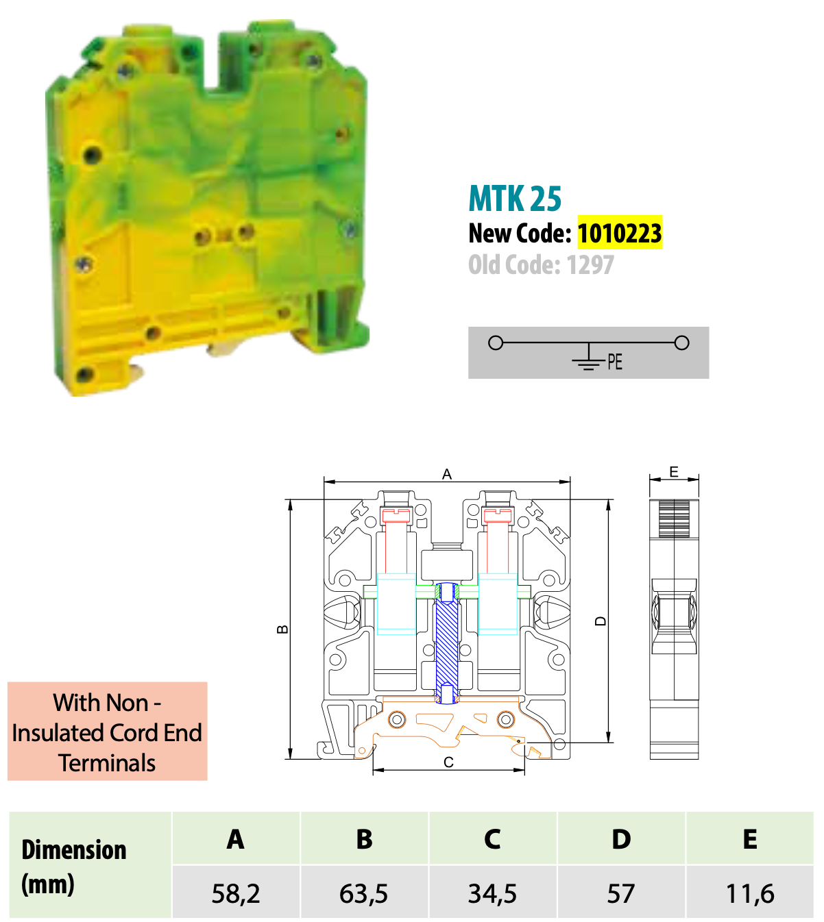 ONKA 16mm2 PE Screw Rail Clamp Block DIN Rail Clamp 2-Wire Gray, 1010223