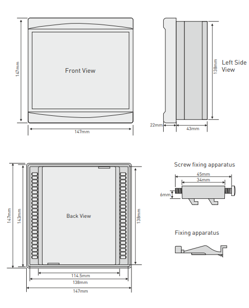 The digital processing of the values measured by the controller ensures high accuracy in the evaluation of the effective voltage, current, and power factor.