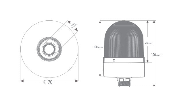 Knipperende ø70 NUT.CONN.SIGNAL BEACON MET BUZZ., 40-250V AC/DC., BLAUW MET 10CM EXT.TUBE