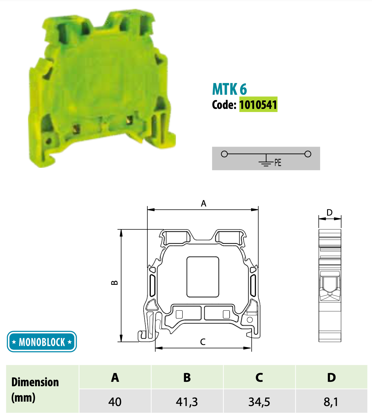 PE railkoppeling met schroefdraad / DIN rail klem 2-draads groen-geel, ONKA, made in Turkey