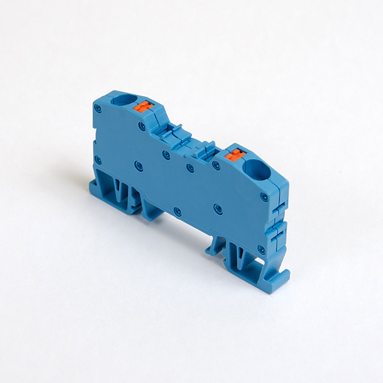 ONKA 6mm2 veerrail connector aansluitblok DIN rail terminal 2-draads blauw, 1020037